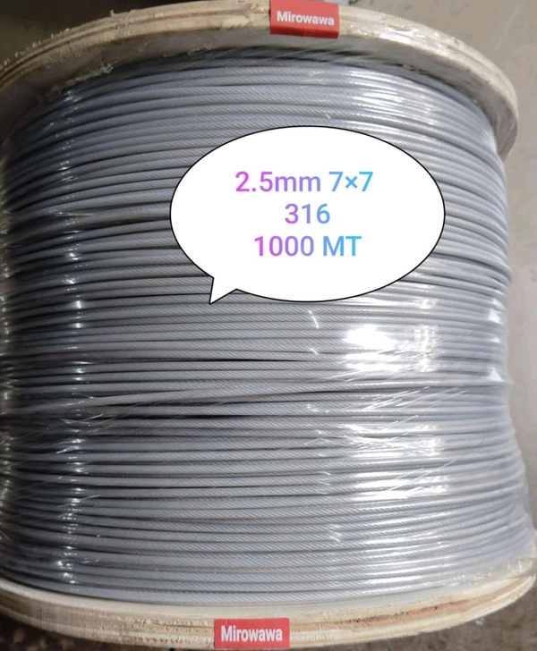 3mm (7×7) 2.5+0.5MM COAT Invisible Grill Cable Wire Rope 3MM Stainless Steel SS316 with Nylon Coat 1000 Metres Roll NON MAGNETIC
